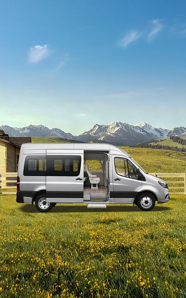 Vans are defined and developed according to the safety standards for large and medium-sized buses. The safety seat brackets, designed to meet the 50 km/h collision standard, are directly mounted to the frame beams to prevent seat detachment, overturning, or sliding in a collision, effectively ensuring driver and passenger safety.