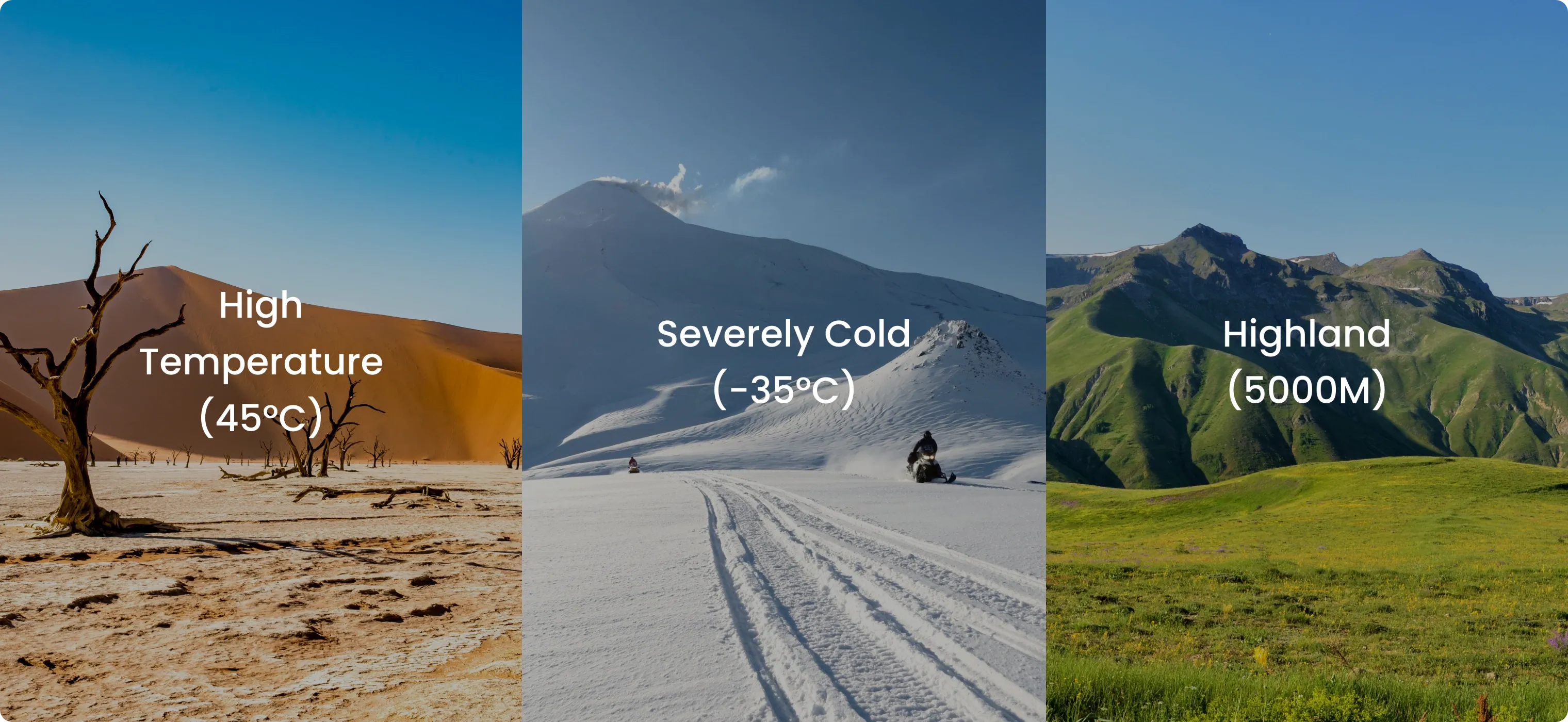 To ensure stable operation across different terrains and climates, Yutong vans have undergone rigorous testing in high-temperature (45°C), extreme-cold (-35°C), and high-altitude (5000m) environments, enabling stable driving even under special conditions.